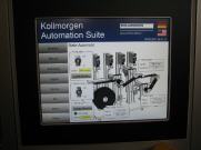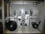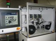 Diese Maschine wurde entwickelt um Servomotor-Funktionalität im Bereich Wickeltechnik auf Fachmessen zu präsentieren. Die einzelnen Funktionsbaugruppen der Wickelmaschine werden dezentral mit Servomotoren angetrieben. Die beiden Auf.- und Abwickeleinheiten und die Rotationsstanzeinheit haben als Servomotor getriebelose, hochdynamische und verschleißfreie Direktantriebe. Die Vorzugswalzeneinheit wird mit einem konventionellen Servomotor mit Planetenradgetriebe angetrieben. Die Steuerung der Wickelmaschine übernimmt ein moderner Industrie-PC mit Software-SPS. Für eine einfache Bedienung und Umstellung der Wickelmaschine wird ein Visualisierungssystem eingesetzt. Für die Sicherheitsfunktionen wird bewehrte „Pilz-Technik“ verwendet. |